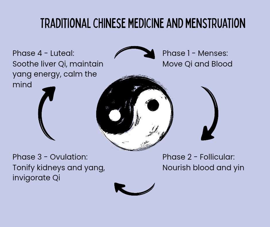In TCM, it's when we focus on resetting and blood movement. It's a time we work on clearing, releasing and improving flow of Qi and blood to make sure the lining of the uterus fully sloughs off.